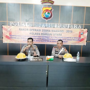 PASANGKAYU, RRN – Polres Mamuju Utara mengadakan rapat koordinasi Jelang Operasi Zebra Siamasei 2019 yang dilaksanakan di ruangan Aula Rupatama Polres Mamuju Utara.Selasa Pagi (22/10/2019).