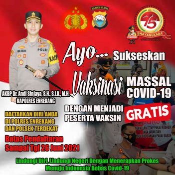 “Silahkan daftarkan diri di Polres Enrekang serta Polsek terdekat dan batas pendaftaran sampai tanggal 26 Juni 2021,” Terang Kapolres Enrekang.