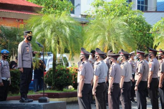 PANGKEP, RRN—Polres Pangkep gelar upacara korps raport kenaikan pangkat personil Polres Pangkep periode 01 Januari 2021, bertempat di halaman apel Mako Polres Pangkep Jl. Cempaka Kelurahan Padoang-doangan Kecamatan Pangkajene Kabupaten Pangkep. Senin, 4 Januari 2021 pukul 08.00 wita.