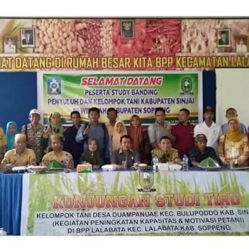 Rombongan diterima oleh Sekretaris Dinas Tanaman Pangan, Hortikultura, Perkebunan dan Ketahanan Pangan (TPHPKP) Kabupaten Soppeng, Ariyadin Arif, Ketua KTNA Soppeng, Mursalim, Anggota Komisi II DPRD Soppeng, Syamsuddin dan Koordinator BPP Lalabata, Mahfudfin.