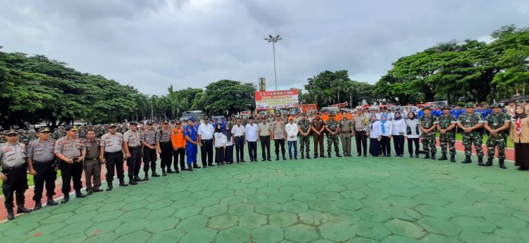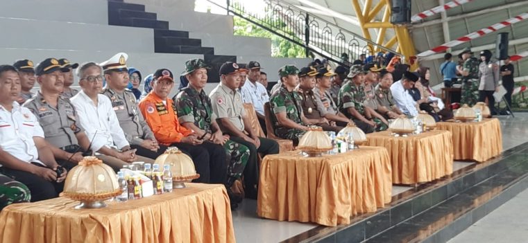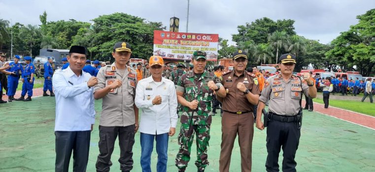 Kapolres Pangkep, AKBP Ibrahim Aji mendampingi langsung Wakil Bupati Pangkep, Syahban Sammana saat pengecekan kesiapan personel yang diturunkan pada apel gabungan tersebut, sebagai bentuk antisipasi bencana.