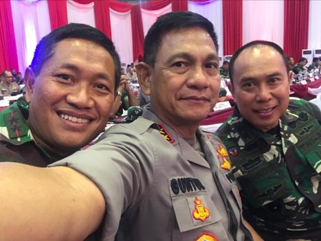 Saat itu tampak Kapolda Sulsel Irjen Pol Drs Mas Guntur Laupe dan Pangdam XIV Hasanuddin Mayjen TNI Andi Sumangerukka serta Pangkoops AU II Marsda TNI Donny Ermawan Taufanto, terlihat sangat akrab dan menunjukkan kekompakkannya, mereka bahkan berfoto selfie bersama.