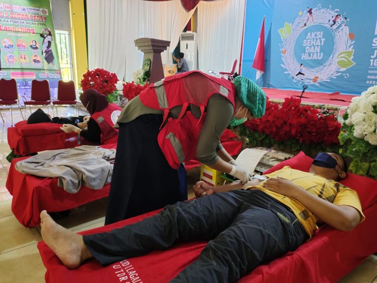 Komitmen tersebut terwujud dalam dukungan Launching Forum Pemuda Puncak Indah (FPPI) pada lanjutan kegiatan ‘Puncak Indah Sehat dan Hijau’. Aksi kesehatan kali ini dengan melaksanakan Vaksinasi dan Donor Darah serta Senam Sehat di Gedung Wanita Simpurusiang Sabtu (19/03/22).
