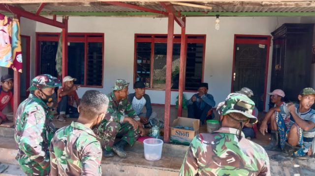 Anggota Satgas TMMD Ke 112 Melaksanakan Komsos Sambil Ngopi Dengan Warga