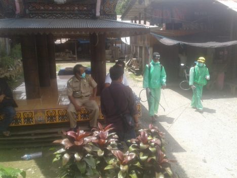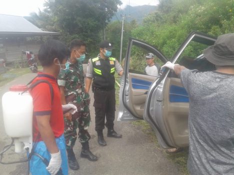 Pacda upaya cegah sebaran corona ini, Bhabinkamtibmas Polsek Saluputti Aiptu Silvanus Makdika bersama Aipda Veri Kombo yang tergabung dengan Tim Satuan Tugas pencegahan Covid-19 yang terdiri dari Camat Masanda , TNI/POLRI, Satpol PP, Dinas Kesehatan Puskesmas Ratte dan aparat dari Lembang dibantu masyarakat ikut serta melaksanakan tugas sebagaimana pembagian lingkup kerja yang telah ditentukan.