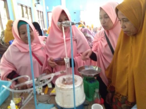 Masyarakat cukup antusias dalam mengikuti kegiatan ini berupa banyaknya yang hadir dan ikut memperhatikan demonstrasi pembuatan etanol dan cuka makan baik dari limbah air kelapa maupun limbah kulit pisang.