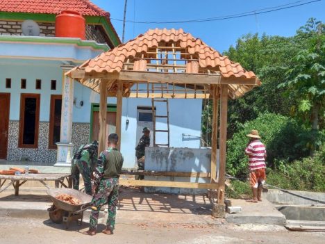 Seperti saat mendekati berakhirnya program ini, beberapa anggota satgas TMMD disela waktunya membantu kades ahmad toli membuat poskamling