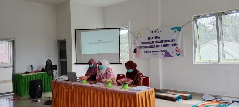 LUTIM, RRN – Dalam rangka membekali kader, Tim Penggerak PKK dan Bidan Desa tentang pengetahuan keterampilan dan alat untuk mendukung ibu, ayah, dan pengasuh dalam meningkatkan praktik pemberian makan kepada bayi dan anak secara optimal, maka UPTD Puskesmas Burau menggelar Pelatihan Tim Pelaksana Dalam Penyiapan Pemberian makan Bayi dan Anak (PMBA), bertempat di Aula PKM Burau, Sabtu (25/02/2023).